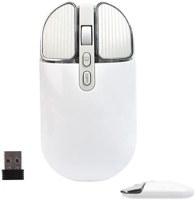 (Note: The USB receiver is stored in the bottom of the wireless silent mouse. ) ^^ Silent Clicking & One-Click Desktop Function - This white wireless mouse for pc features silent clicking, maintaining a quiet work environment, making it ideal for use in offices or schools. This usb wireless mouse also includes a one-click desktop return function, allowing you to return to the desktop with a single press, hide windows, and effectively protect privacy. ^^ Rechargeable Function - This wireless rechargeable mouse features a built-in 500mAh rechargeable battery, which can be charged using a Type-C charging cable. It takes appro 2 hours to charge and can last up to 60 days. This slim mouse wireless is a perfect gift for kids, girls, boys, men, women, moms, dads, daughters, wives, boyfriends, grandpas, grandmas. ^^ Wide Compatibility - This bluetooth mouse cute is compatible with most operating systems, including Windows 7/8/10/2000/XP/Vista/ME/NT/Linux/Mac OS, and works with desktop computer, laptop, personal computer, iPad, smartphone, and other devices with USB port and Bluetooth.