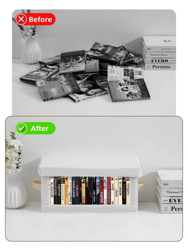 FOLDABLE & STACKABLE-These DVD holders storage cases are foldable for easy storage when not in use and stackable for efficient space utilization. We inserted a density board on the lid to make it more sturdy and convenient for stacking and