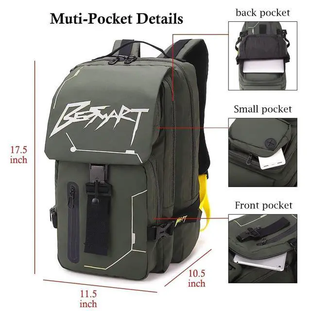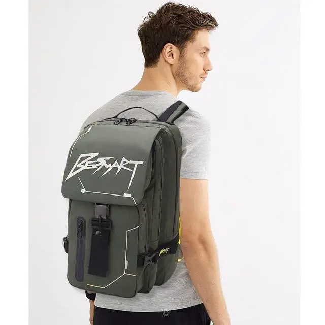Fashionable And Practical Design: This men's work backpack adopts a magnetic buckle design, which improves the convenience and fashion sense of use. With a flap design with the BE SMART logo, it can hide the 4 compartments below to make the backpack visually more concise and beautiful. ^^ Side