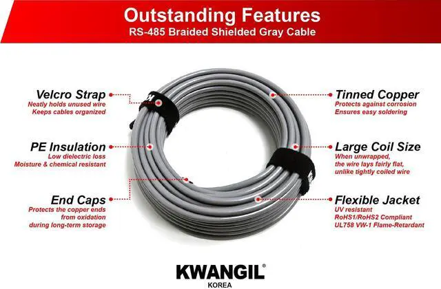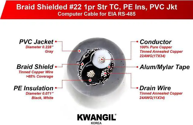 KWANGIL 22AWG 1 Pair (1Pr) EIA RS-485 Shielded Cable Wire is specifically designed for RS-485 communication, a standard for serial communication systems transmission over longer distances in industrial and commercial settings. Here are some of its primary applications: