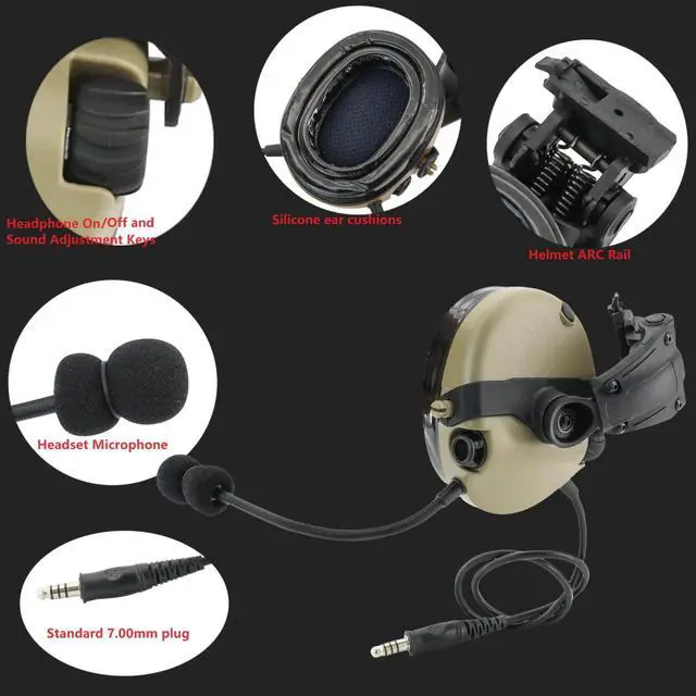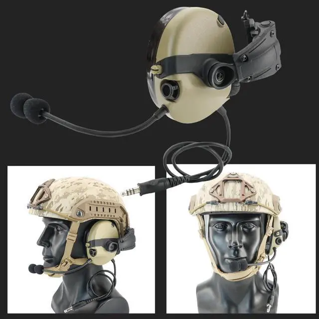 Headset with ARC Rail Adapter Compatible with FAST Helmets, ACH Helmets, MICH Helmets and other helmets with ARC rails on the side Compatible. ^^ Bracket headset rotates 360 and flips up and down. The mount on the headset can also be rotated. The length of the bracket can also be adjusted. ^^ The ear cushions of the headset are made of silicone for extra softness and easy cleaning. ^^ The single-sided headset needs to be worn on only one side of the helmet, using one ear to answer and communicate. ^^ Equipped with KEN plug U94 PTT adapter, compatible with Baofeng UV5R UV82 walkie-talkies