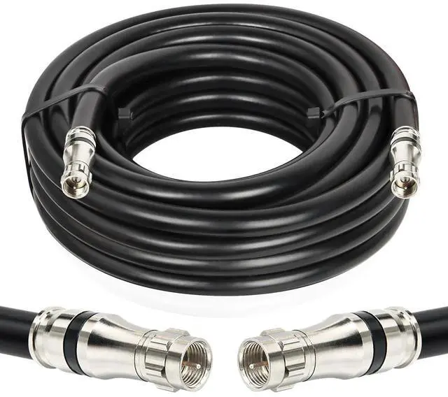 Applications -- This 75ohm rg11 coax cable is widly used for industry, commerce and residence, connecting high definition audio and video signals including CATV, DVR, VCR, Satellite Dish, VHF/UHF, Radio, Amplifiers, TV Antennas and ect. ^^ Heavy Duty Cable -- MOOKEERF rg11 cable and the attached f-type connectors are all top-notch. High quality connectors will not pull off, break and lose signal. The cable features a PVC jacket that is UV resistant, perfects for both indoor and outdoor use, works great in extreme weather conditions.