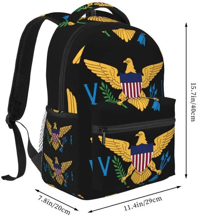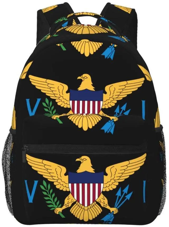 KOSUES American Virgin Islands Flags Eagle Laptop Backpacks Double Shoulder Laptop Pack Bag Daypack Back Pack Bags Rucksack Computer Bag with Side Pockets Front Zipper Pockets