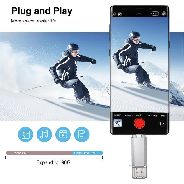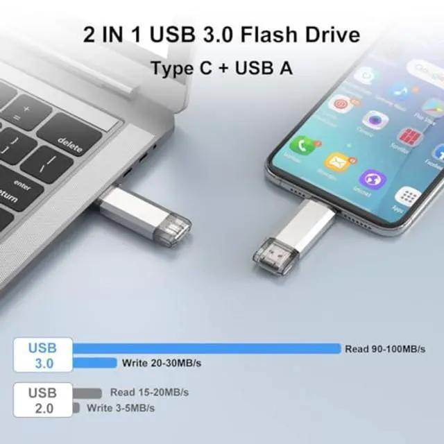 Use: Plug and play, just plug into the type-C or USB port of your smartphones, computer or other devices with OTG function; Compact size and light weight is easy to carry around; There is a loop on the side of the thumb drive for you to attach to keychain and avoids it from lost ^^ Ultra Durability and