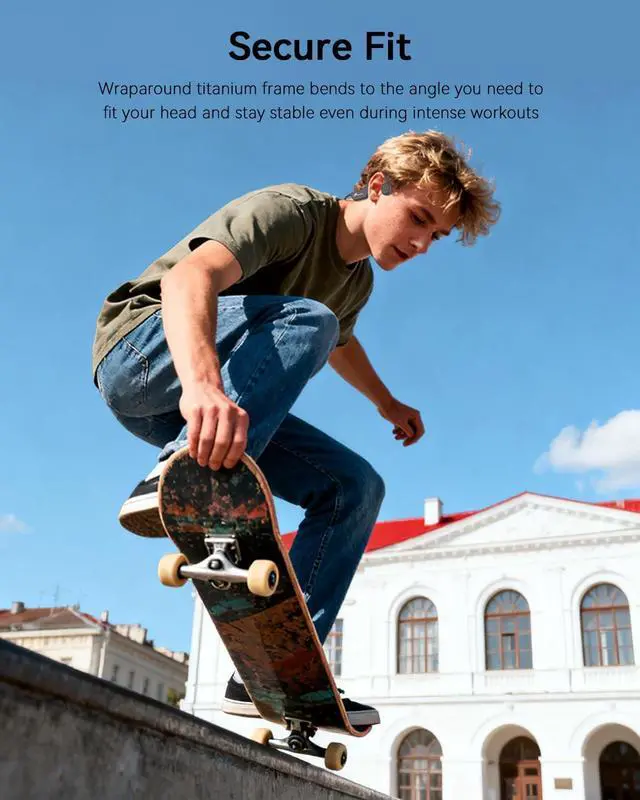 IPX5 Waterproof: These bone conduction headphones feature IPX5 waterproof rating that protects against sweat, rain, and splashes. Ideal for outdoor activities or sports. The durable ABS housing and flexible titanium structure ensure long-lasting reliability, stay motivated in any weather.