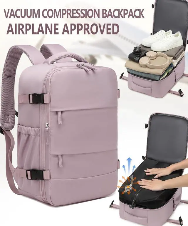 FOXTOUR Travel Backpack w/Vacuum Compression (w/Pump) - Carry-On, 18x14x8 In, Multi-Comp Laptop Bag ()