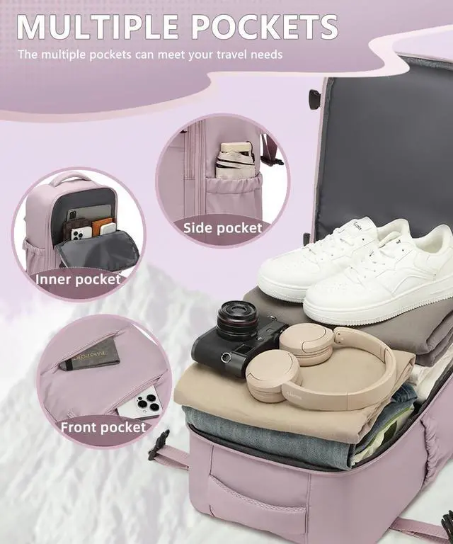 • Flight-Approved Carry-On Luggage: Compliant size of 423018 cm (slight error may occur with manual measurement), fits in airplane overhead bins/under seats, no waiting for checked luggage