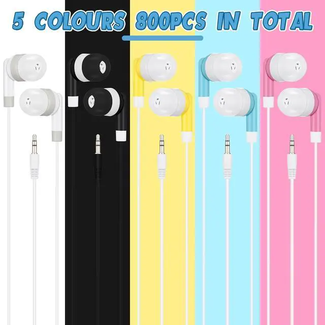Package Content: the package comes with 800 pcs of headphones wired in 5 different colors, namely grey, black, pink, sky blue, yellow, 160 pcs for each, sufficient for your daily use or to share with your friend;