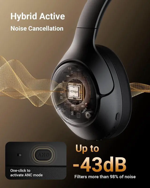 Premium Sound QualityEnjoy superior audio with wegear HS1 wireless Bluetooth headphones. Equipped with a powerful 40mm driver, it delivers crystal-clear highs and rich, deep bass that meets Hi-Res standards for an immersive listening experience ^^ Hybrid Active Noise CancellationImmerse yourself in pure music with wegear Hybrid ANC Headphones, designed to filter up to 98% of noise with up to 43 dB reduction. In addition, one-touch control lets you switch seamlessly between Transparency and Noise Cancelling modes ^^ 60H Battery LifeWith up to 60 hours of playtime in ANC OFF mode, wegear HS1 Bluetooth headphones keep you powered through long trips and enjoy up to about 900 songs.
