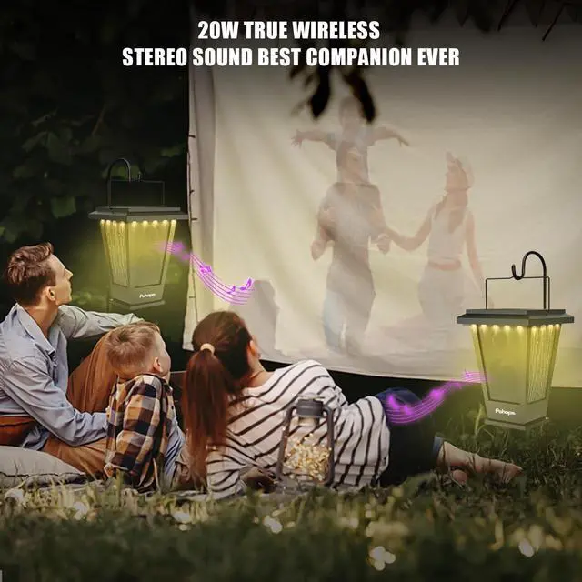 STUNNING LED LIGHTS: Light up your outdoor space with the 20 built-in LED lights around the speakers. Choose from 7 dynamic colors or select the sound-responsive effect that syncs with your musics beat. The colors rotate through Red, Green, Blue, Yellow, Light Blue, Purple, and Whiteadding a vibrant, party-ready atmosphere to any gathering. High-quality sound and a lovely look make these speakers the perfect centerpiece for your next BBQ, party, or evening relaxation.