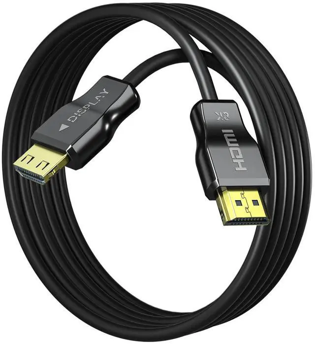 It resists bending, pulling, and extreme temperatures, making it ideal for tight spaces behind TVs, under carpets, or permanent installations. Designed to outlast standard **HDMI 2.1 cables **, ensuring long-term reliability. ^^ Next-Level 8K Performance with No CompromiseUnlock the full potential of HDMI 2.1 with true 48Gbps bandwidth, supporting 8K@60Hz, 4K@120Hz, and the latest gaming enhancements. VRR eliminates screen tearing, ALLM minimizes input lag, and eARC ensures flawless Dolby Atmos audio sync. Optimized for Samsung, LG, and Sony 8K TVs and projectors, this optical HDMI cable guarantees pristine HDR and Dolby Vision qualityeven at distances of 65ft+.