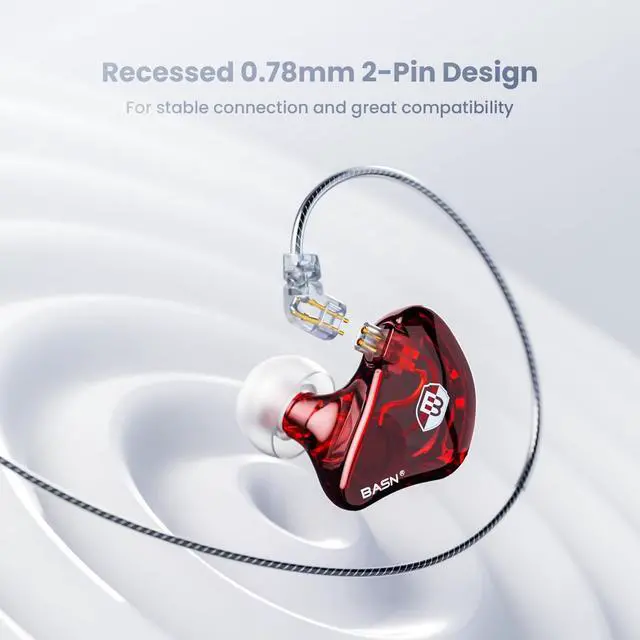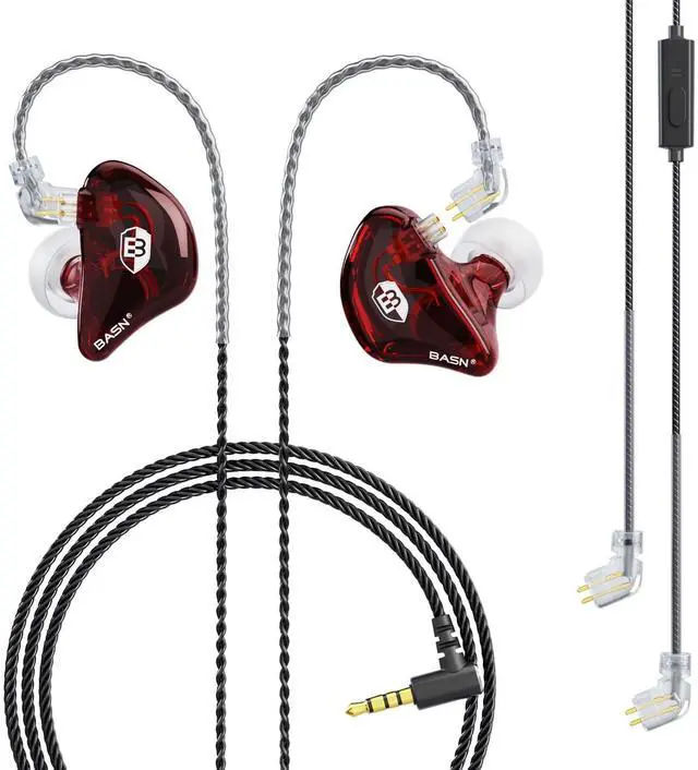 &: Flexible over-the-ear memory wire and six pairs of ear tips provide you with a secure, personalized fit. The sound in the BASN inner ear monitor is crystal clear even in a noisy environment and will not be distorted on the stage. These earbud for musician can bring you comfort and relaxation all-day ^^ -: BASN professional earbuds comes with two detachable and replaceable cables: the durable woven cable for professional stage monitoring while you can connect iems to your phone for daily use with the mic cable. The universal gold-plated 2-Pin connector makes cable replacement or upgrade easily ^^