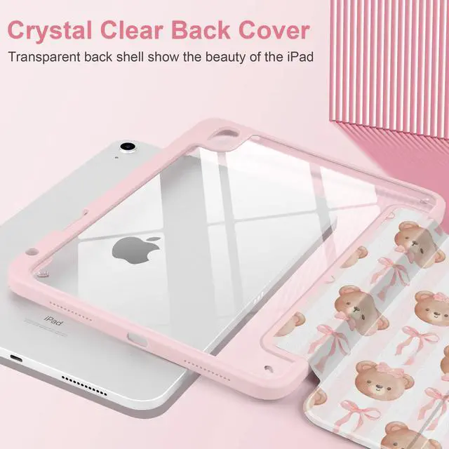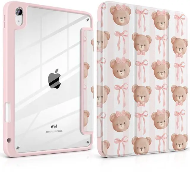 TWOLSKOO for iPad 11th & 10th Gen Case with Pencil Holder, Trifold Stand, Auto Sleep/Wake, Clear Acrylic Back with TPU Bumper, for iPad 11-inch (2025, A16 Chip) & 10.9-inch (2022), Bows & Bears
