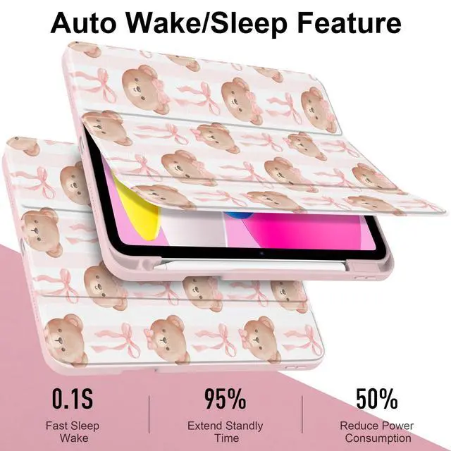 TPU Bumper: The transparent hard back shows off your iPad or artwork while resisting scratches. Soft TPU edges absorb shocks to protect against drops and daily wear, while the soft interior lining protects the screen without adding bulk. ^^ Auto Sleep/Wake & Slim Protective Design: Automatically wakes your iPad when opened and puts it to sleep when closed, helping save battery life. Precise cutouts provide easy access to Touch ID, buttons, ports, speakers, and other functions