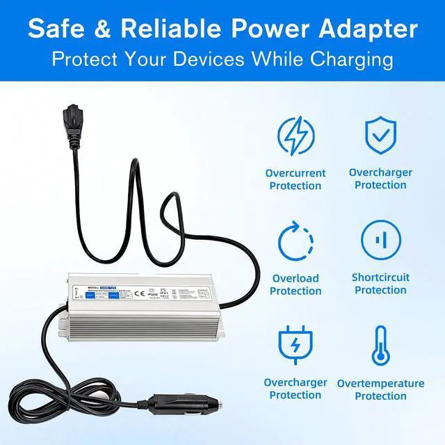 NOTE: The AC plug and cigarette lighter male plug are not waterproof, please keep them dry. If there is any issue, please contact us, we will reply in 12 hours.