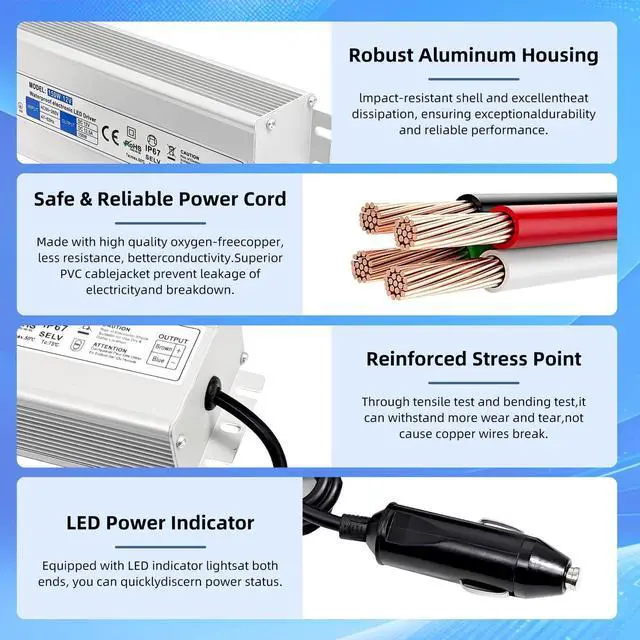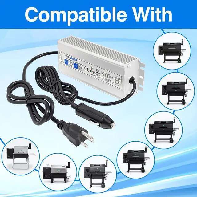 EXCELLENT QUALITY: Features waterproof construction to safely power your grill in outdoor conditions; Our power cord is made of high quality PVC material, flexible and wear-resistant, durable. ^^ Multiple safety features are incorporated into the device, including overload, over voltage, over temperature, and short-circuit protection. The sturdy aluminum alloy enclosure with excellent heat dissipation capabilities, effectively prevents overheating.