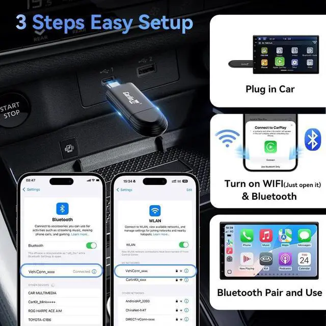 Play: -The CarPlay adapter can be set up in just three steps to get started quickly, with no additional apps or drivers required. Automatically reconnects to your device once paired, ensuring a hassle-free connection every time you travel. Great for on-the-go and consistent performance ^^