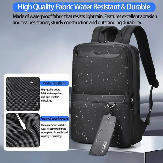 Protection and Durability: This backpack is made of high quality tear resistant polyester Oxford cloth, which effectively resists rain splashes and daily stains. All stress points are reinforced and fitted with wear resistant high quality zippers, ensuring sturdiness and reliability in high intensity scenarios like commuting and business trips, accompanying you for long term use. ^^