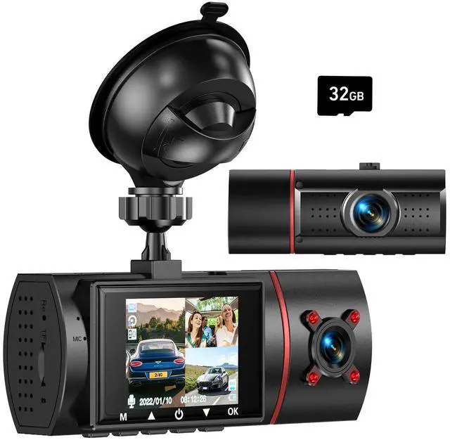 Dual-Channel Car DashcamThis dashcam simultaneously records footage of the road outside and the interior of the vehicle. It features a standard 1080P high-definition front camera and a 720P interior monitoring camera, and comes with a built-in 32GB card. Equipped with four infrared night vision lights, this dual-channel dashcam is designed for ride-hailing services, taxis, and commercial vehicles, providing 24/7 day and night dual monitoring of both the interior and exterior of the vehicle. ^^ Dashcam with Infrared Night VisionThe Milerong dashcam is equipped with four infrared fill lights, an F 2.0 large aperture glass lens, and a high-performance image sensor, allowing it to capture clear and stable images even in tunnels, at night, or in low-light conditions, ensuring excellent and reliable recording performance around the clock.