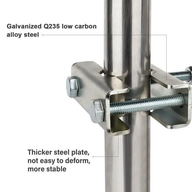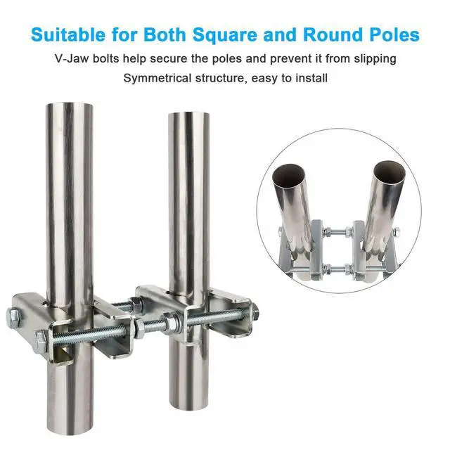 [Easy to Install] Mount 2 antenna mast poles in parallel firmly, V jaw blocks would prevent it slip down, suitable for both square and round poles. ^^ [High Quality Made] Made of Q235 low carbon alloy steel that could effectively prevents rusting, and it is galvanized which provide oxidation and corrosion proof. ^^ [Widely Used] Long time service antnena pole mount that suitable for Network antennas, TV antenna, weather station, security camera, solar panel, LED street light etc. ^^ [Heavy Duty Hardware] Thick steel blocks for heavier mast and not easy to be bent, can strongly against winds and extreme weather to keep your device safe.