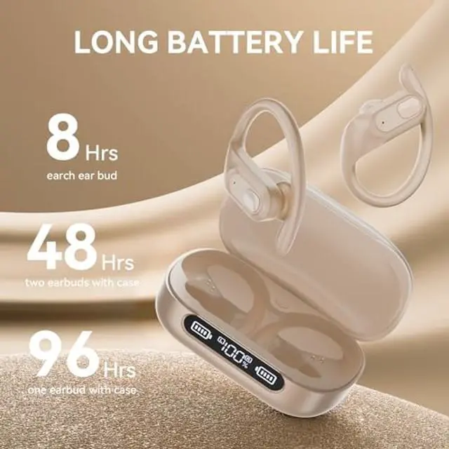 Immersive Music Sound: Our wireless sport earbuds feature ANC noise cancelling technology, which significantly reduces ambient noise interference. High-sensitivity sport headphones with mic ensure crystal-clear calls in any environmentideal for commutes, open offices, or gym workouts. The earbuds with 13mm large size speaker driver delivers powerful bass, mellow midrange, and clear treble, reproducing your music vividly to power your workout ^^ 2. Digital LED Display & 96H Long PlaybackThe LED display charging case accurately shows real-time remaining power of the case and charging progress of each earbud, avoiding sudden power cuts during workout / travel / business trip / weekend hike. T9 ANC bluetooth headphones offer 8hrs of continuous playback per charge, while the charging case can recharge them 5-6 timesproviding up to 48hrs single-ear/96hrs dual-ear playback, perfect for long lasting battery wireless sport earbuds lovers ^^ 3. Ergonomic Anti-Slip DesignThe ergonomic sport earbuds with flexible ear hooks fit snugly, staying put during runs, jumps, or yoga (top anti-slip running headphones). Soft silicone ear tips and a humanized design ensure long-term wear is pain-free and pressurelessno discomfort even after all-day use. The earbuds are sweatproof and rain-resistant, easily handling workout sweat and sudden raindrops, perfect as waterproof earbuds for gym yoga.