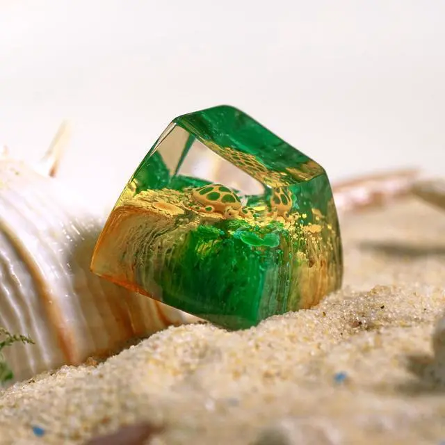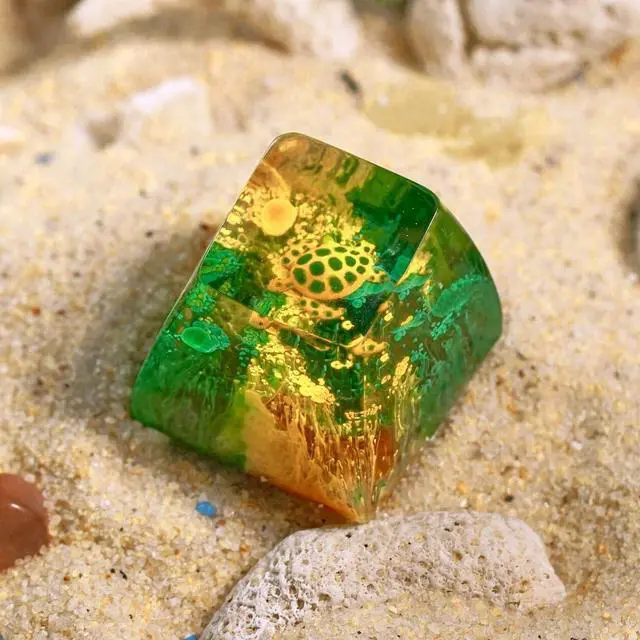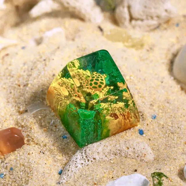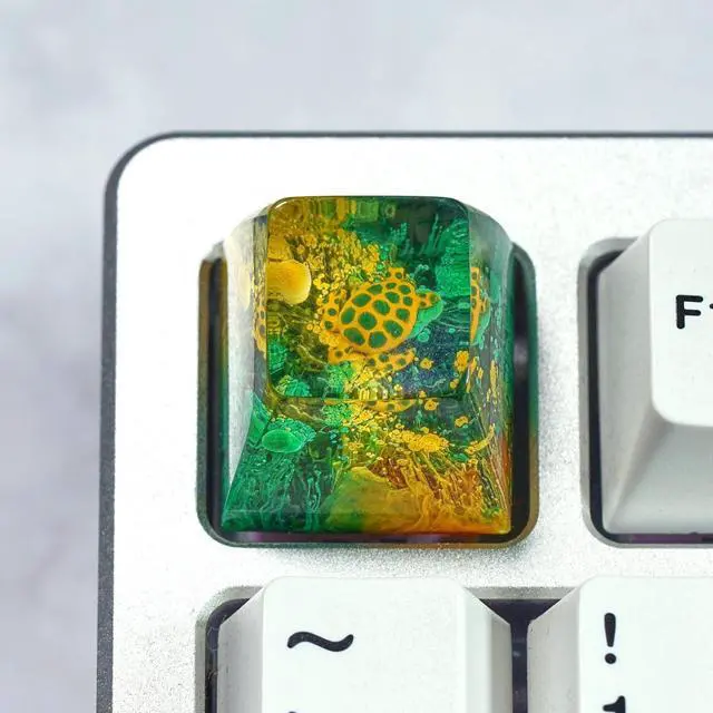 Sea Turtle Artisan Keycap Green and Yellow Coral Reef R1 SA Profile Custom Sea Creatures Keycaps 1U ESC Handmade Gaming Resin Key Cap Cherry MX Switch Compatible Mechanical Keyboard Turtle Lover Gift