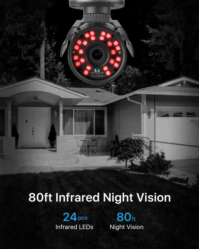 2.0MP 1080P HD-TVI Bullet security cameraThis 1080P HD-TVI Bullet camera Compatible with 720P, 1080P, 5MP, 4K, HD-TVI/AHD/CVI analog DVRs, but do not Compatible with 960H DVRs. ^^ 80ft Night Vision get a sharp and crisp image day or night with the camera's automatic IR-CUT filter Up to 80ft night vision in total darkness and 130ft Night vision in ambient light. More than 3.0L ux the night vision is color. ^^ Indoor and outdoor useAluminum metal vandal proof & waterproof can withstand the toughest of outdoor conditions, 3-axis camera stand, cable through bracket for hassle free use in rainy or snowy days.