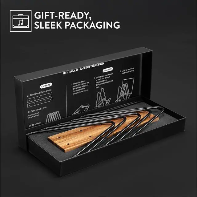 Perfect Music Lover Gift: Packaged beautifully, our tabletop record holder is the perfect gift for vinyl enthusiasts. Our vinyl holders' combination of functionality and aesthetics is sure to delight any music lover.