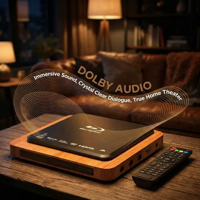 1080P Full HDEnjoy crisp and vivid picture quality with upscaled 1080P Full HD resolution, delivering a superior viewing experience for both Blu-ray and standard DVDs. ^^ HDMI & AV OutputCompatible with modern and legacy TVs via HDMI and AV connections. Includes both HDMI and AV cables for easy setup right out of the box. ^^ Dolby Digital AudioExperience immersive surround sound with Dolby Digital support, bringing cinema-like audio quality to your home entertainment. ^^ USB PlaybackPlay your favorite movies, music, and photos directly from a USB drive. Supports multiple media formats for versatile entertainment options.
