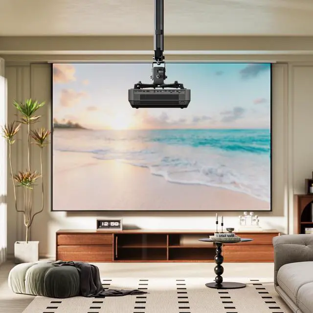 3-IN-1 UNIVERSAL PROJECTOR MOUNTWorks as a flush ceiling mount, extendable ceiling arm, or wall mount projector bracket for maximum flexibility. Ideal for home theater projectors, office presentations, and classroom setups. Fits wood studs, concrete walls, and flat ceilings. ^^ HEAVY-DUTY PROJECTOR HOLDERBuilt with premium steel construction to safely support projectors up to 44lbs (20kg). Anti-slip pads and reinforced joints provide extra stability, keeping your image sharp and steady during use. ^^ FULLY ADJUSTABLE VIEWING ANGLESTilt your projector +15/-15 and swivel +8/-8 for the perfect screen alignment.