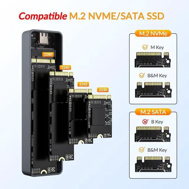 WIDELY COMPATIBLE. iDsonix M. 2 NVMe SSD adopter Fully compatible and support 2230224222602280 four different specifications of M. 2 NVMe SSD solid state drives, suitable for connecting PCs, smartphones,, smart routers, PS4 and compatible with all brand such as iDsonix, Samsung, Toshiba, Crucial, Kingston, Seagate, WD, OWC, etc. ^^ HIBERNATION & LED INDICATOR MONITORING. iDsonix M. 2 NVMe SSD Case Support intelligent hibernation technology, (enter hibernation state after 10 minutes of idle time, energy saving and environmental protection, improve the service life of hard disk; Support hot swap, plug and play.