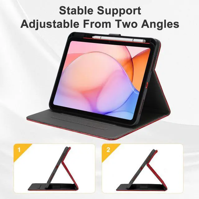 ^^ All-in-One Functional Design: Pencil, Cards & StandFeatures a dedicated slot to store your Apple Pencil, three card slots for your ID and credit cards, and an adjustable stand with two viewing angles for typing, video calls, or presentations. Its the ultimate hub of convenience, eliminating the need for a separate wallet or pencil holder. ^^ Auto Sleep/Wake & Secure Wrist StrapThe built-in auto sleep/wake function intelligently preserves your iPad's battery life by turning the screen on/off when you open or close the case. The attached wrist strap provides an extra layer of security and portability, making it ideal for use on the move. ^^ Perfect Fit & Slim ProfileDesigned specifically for the iPad (a16) 11th Generation 11inches (2025) and iPad 10th Generation 10.9 '' (2022), it offers precise cutouts for easy access to all ports and buttons. Despite its multi-functional features, it maintains a slim and lightweight profile without adding bulk.