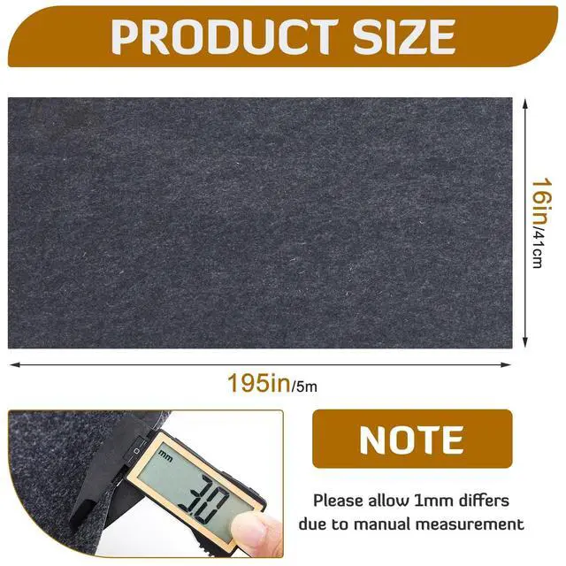 Extra Large Coverage: massive 16 x 195 inches/ 1.35 x 16.4 ft dimensions deliver 3168 sq in/ 22 sq ft of seamless coverage, much larger than standard auto carpets; Ideal for full truck beds, RV walls, or over-sized speaker boxes; Cut to fit any shape without fraying edges thanks to 100% polyester construction ^^ Self
