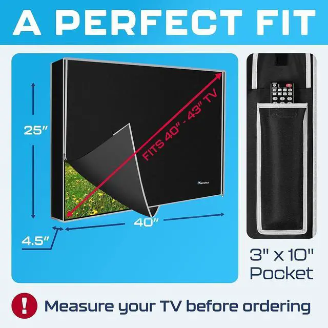 42 INCH TV COVER OUTDOOR WATERPROOF - This tv covers outdoor 42 inch will keep the equipment safe from dust, rain, snow, wind, damp, and even sunlight and other harsh elements. A great weatherproof tv cover / weatherproof tv box for your TV. ^^ 43 INCH TV COVER OUTDOOR WATERPROOF FITS PERFECTLY ON MOST MOUNTS - Your 43 inch tv cover or tv weatherproof case fits perfectly on most tv mounts. Our tv display protectors/ outdoor tv cover looks perfectly neat on your 40-43" outdoor TV protector ^^ GOOD QUALITY OUTDOOR TV COVER 43 INCH WATERPROOF.