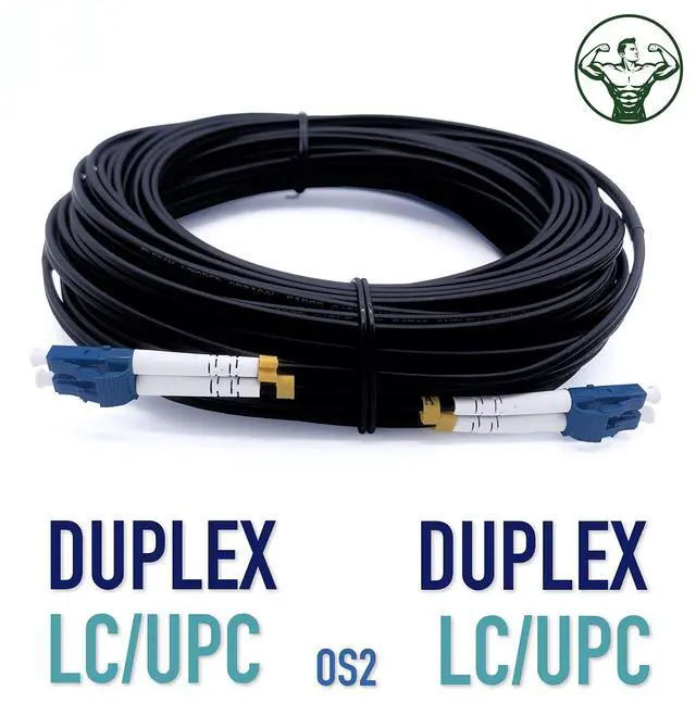 Armored steel fiber optic cable for outdoor and indoor LC/UPC to LC/UPC OS2 singlemode duplex, 9/125 um. Shielded steel tape inside the outer jacket resists damage caused by harsh environments, stress, and rodent bites. High-quality fiber ensures reliable connections in harsh environments (machinery, factories, railroads, churches, etc. ).