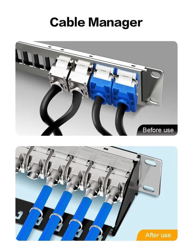 Blank Keystone Patch PanelEnmane 1U keystone blank patch panel supports standard sized keystone jack, such as HDMI keystone, RJ45 keystone, USB keystone, fiber keystone, 3.5 mm keystone, keystone jack insert and more. ^^ Easy to useInstall this 24port blank patch panel effortlessly in universal 19" racks, cabinets, or wall mount brackets. It can be used in business, office and home. ^^ Durable constructionThe 24 port keystone patch panel is built with a steel panel for lasting use and numbered ports are clearly labeled on the front. ^^ Cable ManagementThe blank patch panel has cable management bar, writable label spaces, and a rear cable management bar to support the weight of 24 cables.