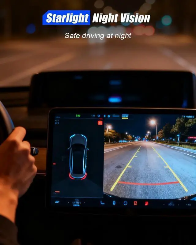 Starlight Night Vision: Even in dim environments or nighttime driving, the parking assist camera can capture clear images with high detail resolution, avoiding blind vision problems during nighttime reversing, no additional lighting is required, and the lens automatically adjusts the light, allowing you to operate with peace of mind in the dark ^^