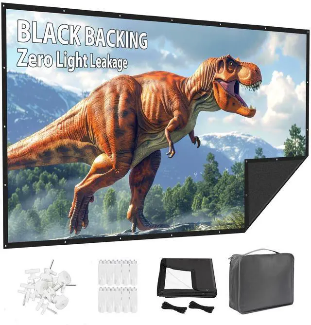 Experience Better Contrast and Color2025 Upgraded 84 inch projection screen with black backing is impervious to light, effectively resisting light sources and eliminating light spots. Improve video playback quality, more helpful for daytime and outdoor use ^^ Wrinkle-free projection screenVOOPVOR projection screen, the back of the opaque black background, the projection screen is made of 200 grams of polyester milk silk, 16:9 format, 160 wide viewing angle, good projection effect, will be fixed in place after the full unfolding can be wrinkle-free, washable, foldable, can also be used as a blackout cloth in summer ^^ Adopt super small hole design Super small hole design with Qi sticky super strong hook, effectively ensure that fixed in the wall is not easy to fall off, the whole are using thickened material to make the border more straight than other screens ^^ Multiple Installation MethodsYou can use hooks to attach to the wall or frame, or use rope to tie to the tree or patio.