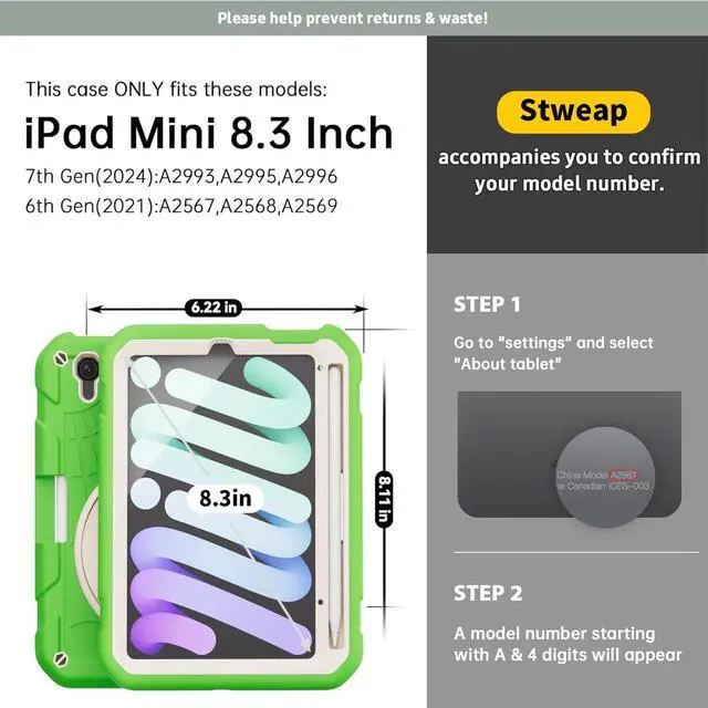 ^^ Serving: Fit for outdoor activities, free charge of Product Changes or Refunding after receiving products within 3 months & 6 months Warranty and Maintenance of Stweap iPad Mini 6 case!