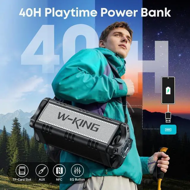 One-touch NFC: Take your sound quality into your own hands with the built-in equalizer (indoor and outdoor mode). Adjust your audio signal, find the right balance, and enjoy deep bass, clear mids, and crisp treble. NFC connection allows you to pair your smartphone with your portable speaker by simply touching it (NFC Only for Android) ^^ Supported Advanced Bluetooth 5.0 /AUX/TF Card and