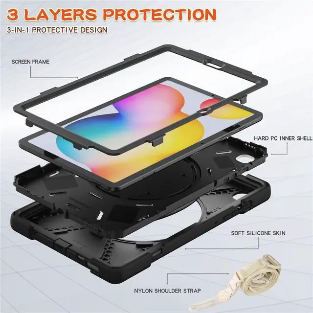 Anti-shock The three-layer structure design combining PC and silica gel is shock-resistant, so you dont have to worry about your tablet slipping off your hands and breaking it. All ports, buttons, and cameras can be accessed without removing the Galaxy Tab S6 Lite case.