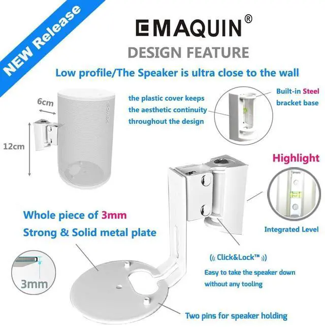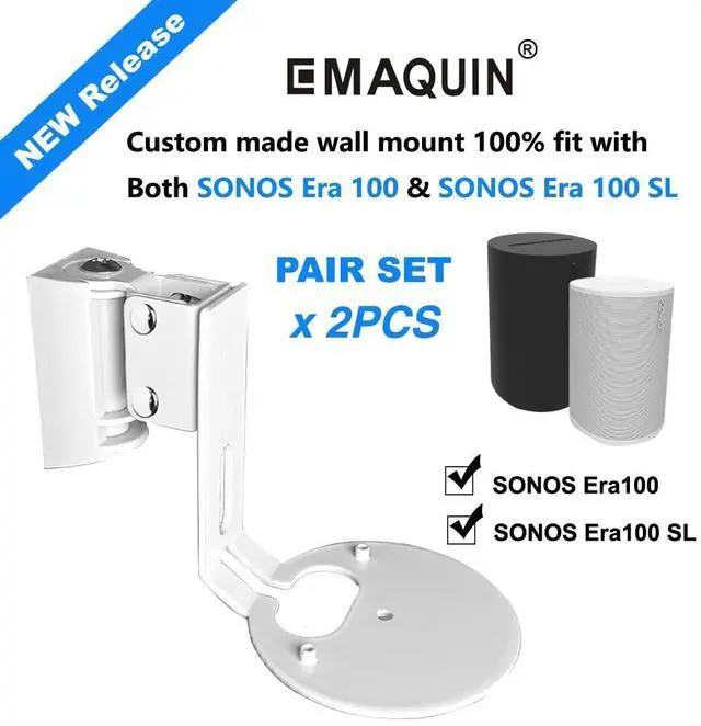 EMAQUIN Wall Mounts Brackets-Pair Set(2PCS) for Sonos Era 100/Era 100 SL Speaker(Include 2PCS,Swivel and Tilt,Sturdy Metal,Enduring Paint Finish,Compatible with Sonos Era 100/Era 100 SL,Pair,White)