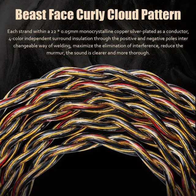 Upgrade Monocrystalline Copper Conductor: Monocrystalline copper as a conductor, each strand within the 22 * 0.05 mm monocrystalline copper silver-plated as a conductor, 4-color independent surround insulation through the positive and negative poles are interchanged by the way of welding, you can maximize the elimination of positive and negative poles within the conductor interfere with each other, thereby reducing the murmur, the sound is more detailed and clear.
