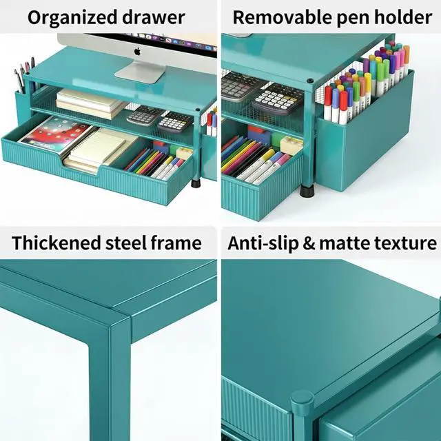Ergonomic Eye-Level Comfort Elevate your screen to the perfect eye level to eliminate neck strain and slouching. ECOLOVI desk organizer monitor stand promotes a healthier posture, reducing fatigue during long hours of work or studying, so you can stay focused and productive all day