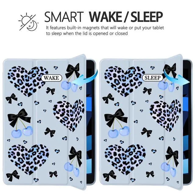 Joyland Leopard Cherry for iPad 10th Generation Case 10.9 inch 2022/iPad (A16) 11th Gen 11 Inch 2025,Built-in Pencil Holder with Shockproof Cover Transparent Back Shell Auto Wake/Sleep,Blue