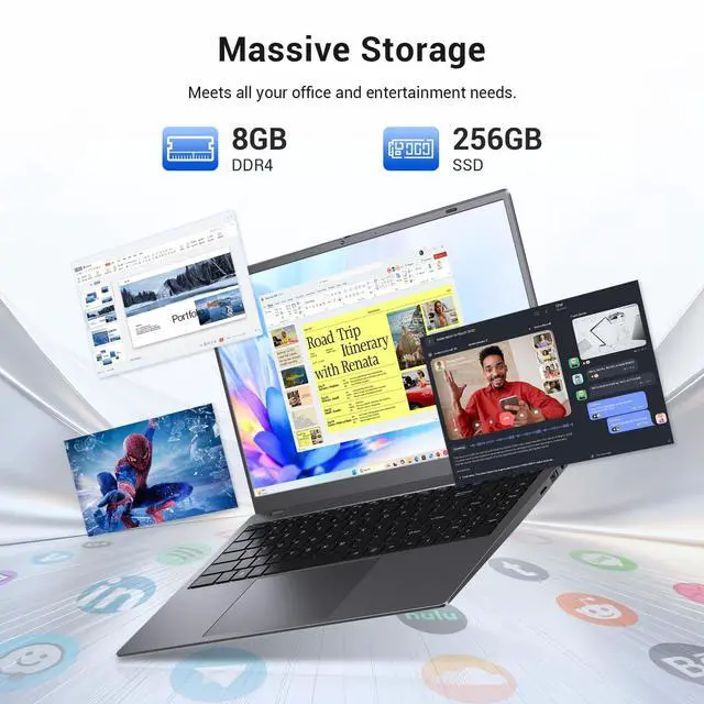 Powerful PerformanceThe laptop is equipped with the AMD 3020e Processor. This processor has 2 cores4 threads, with a peak frequency of up to 2.60 GHz. This reliable processor ensures smooth operation whether you are handling daily tasks or engaging in light multimedia activities, allowing you to work and entertain yourself happily. ^^ Ample Storage SpaceFeaturing 8GB DDR4 RAM and 256GB SSD M. 2 2280, you'll have plenty of room to store all your important files, applications, photos, and videos. The large RAM allows for smooth and quick data access, enabling seamless switching between different programs.