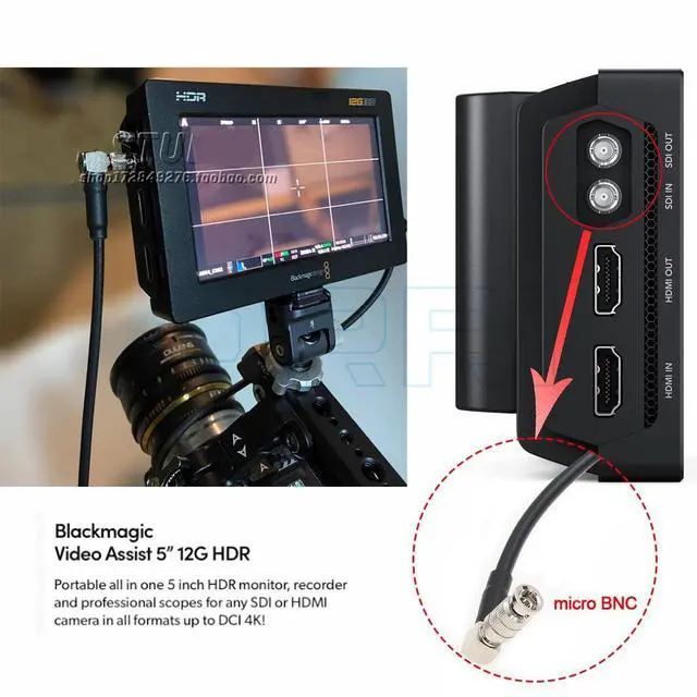 DRRI HIGH Density BNC Female to Micro-BNC Right Angle Coaxial Cable for DekTec Device^^ Blackmagic Video Assist 12G 5