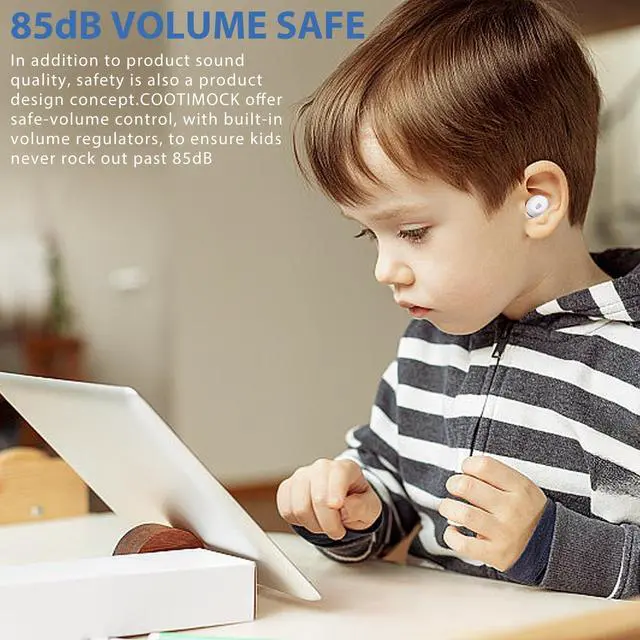Volume Limit: Kids should enjoy excellent sound quality too. COOTIMOCK's kids earbuds has a built-in 10mm speaker unit that delivers low and powerful bass, clear and natural mid-range, and bright but not harsh highs. COOTIMOCK's kids bluetooth headphones has a volume limit of 85dB, which is designed to let kids enjoy music and videos at safe and appropriate volume. So parents don't have to worry about their children's hearing not being protected! ^^ Bluetooth 5.3 and