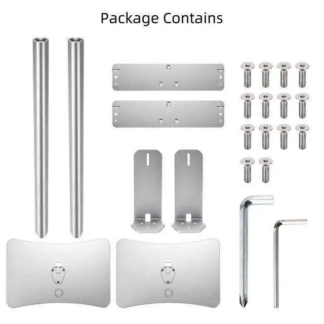 Packing Includes2 x Stands (1 pair). 1 x Set of installation tools. 1 x Manual (stands only,the speaker is not including).