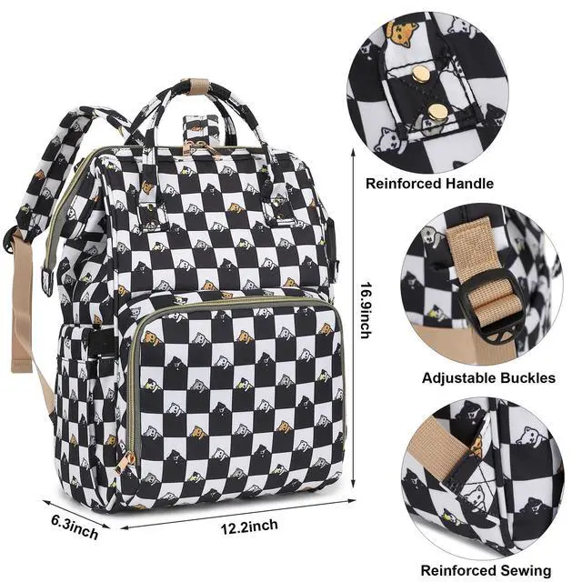 Xunteny Checkered Cat Women Laptop Backpack, College School Backpack Bookbag 15.6 Inch Computer Backpacks for Work Business Travel